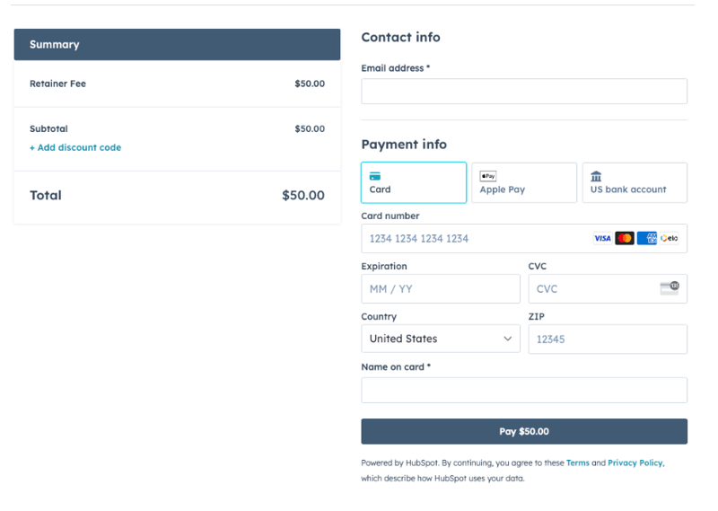 Stripe-maksuissa voi nyt käyttää Apple Payta ja Google Payta (UK, Kanada, USA), eli asiakas voi maksaa suoraan puhelimellaan tai selaimeen tallennetuilla lompakkotiedoilla ilman, että korttinumeroita tarvitsee syöttää manuaalisesti. Tämä tuo HubSpot-checkoutiin saman ostokokemuksen, johon B2B- ja B2C-ostajat ovat jo tottuneet muissa kanavissa, ja madaltaa erityisesti mobiilissa sitä viimeisen vaiheen kitkaa, jossa osa ostajista normaalisti putoaa pois.