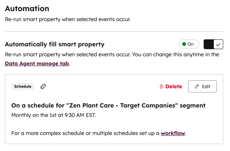 HubSpot täyttää propertyja automaattisesti tunnistamiensa patternien ja olemassa olevan datan pohjalta: esimerkiksi sähköposteista, lomakevastauksista ja aktiviteeteista poimitun tiedon avulla se päättelee tittelit, yrityksen perustiedot, sijainnin tai vaikkapa toimialan ilman, että käyttäjän tarvitsee naputtaa kaikkea käsin.